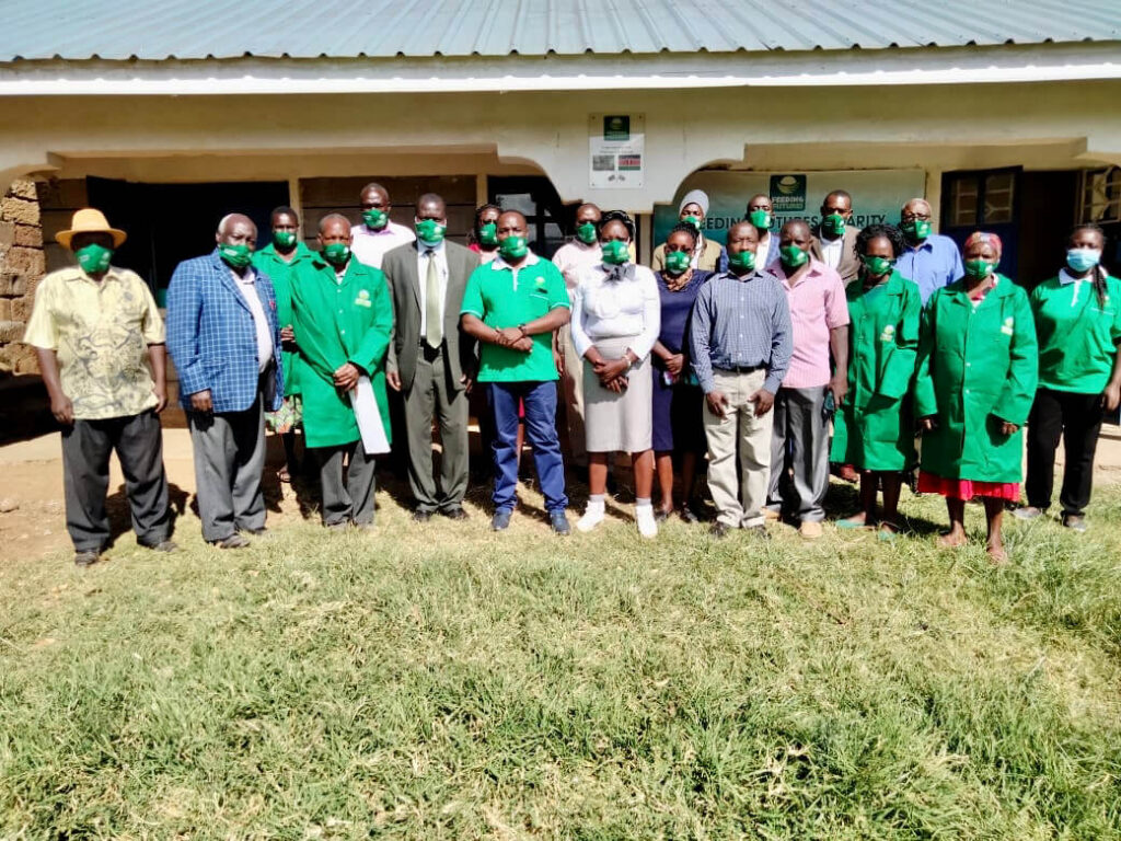 Representatives of the clergy group visited the school on 10th March 2021. Secretary, Simon Ndirangu; vice chair, Mugane Joseph and treasurer, Teresa Wangui presented the gift of oil for the school kitchen. Chair of the kitchen committee, Teacher Robert Omosa received the gift of oil for the school kitchen on behalf of Mukinyai Primary School.